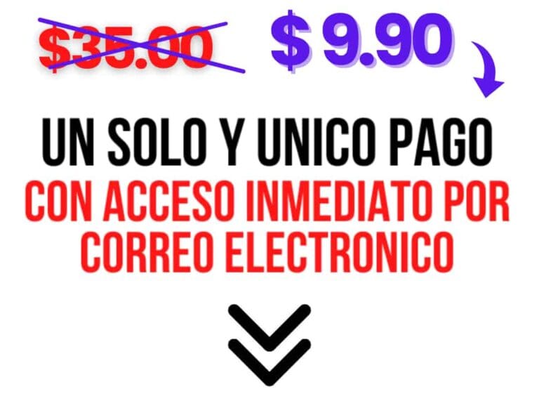 🎁 Hoy puedes conseguirlo con más del 90% DE DESCUENTO, por solo $ 9.90 dólares en un único pago.